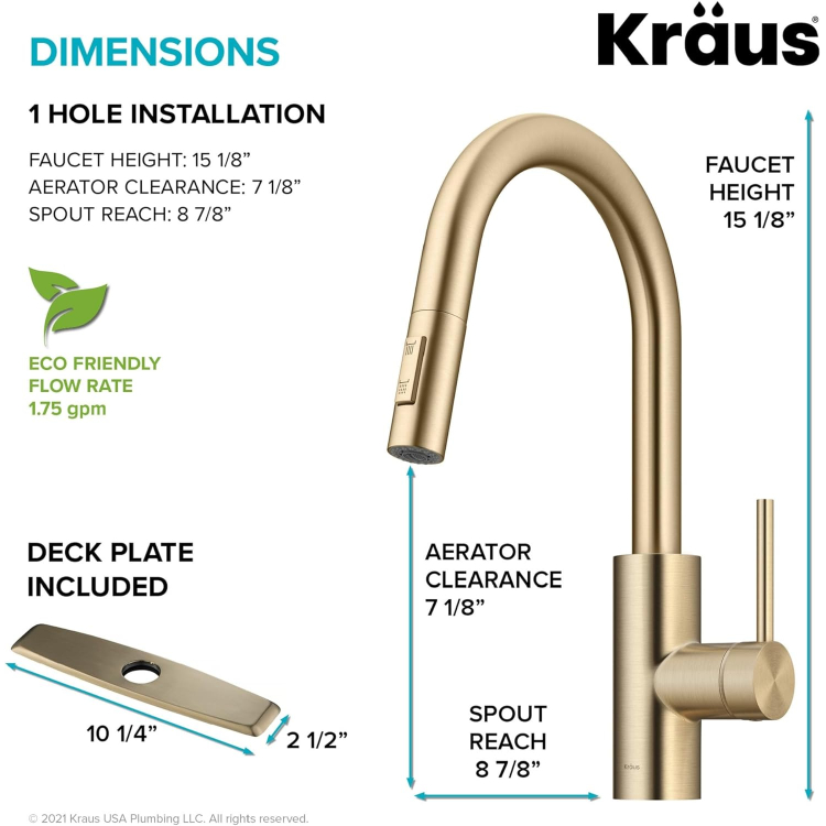 - Экологический смеситель: Водосберегающий аэратор снижает расход воды без ущерба для давления, обеспечивая эффективный расход 1,75 гал/мин.