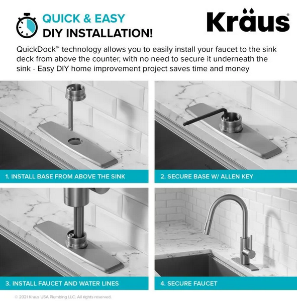 - Простая установка Topmount со вставным основанием QuickDock позволяет сделать монтаж в считанные минуты без необходимости подходить к раковине снизу.