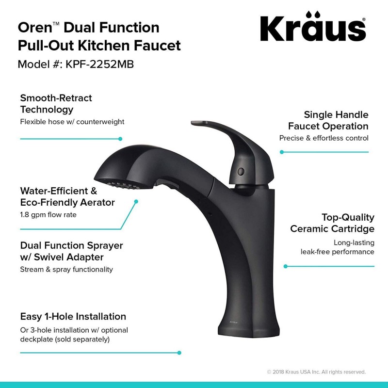 Смеситель для кухни Kraus Oren однорычажный матовый чёрный KPF-2252MB
