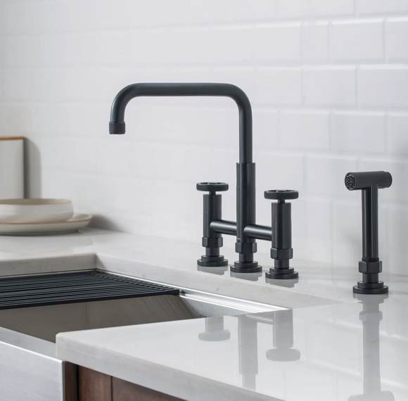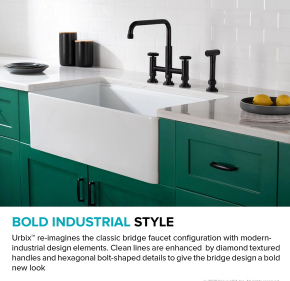 Urbix переосмысливает классическую конфигурацию мостового крана с элементами современного промышленного дизайна. Четкие линии подчеркнуты ручками с ромбовидной текстурой и деталями в форме шестигранных болтов, которые придают дизайну моста новый смелый вид. Прилагаемый боковой распылитель обеспечивает превосходную маневренность, позволяя вам очистить каждый уголок вашей раковины. Высота излива может быть отрегулирована до одного дюйма, чтобы соответствовать тому, как вы используете свою раковину и вмещаете самую большую кухонную посуду. Urbix доступен в нескольких потрясающих устойчивых к царапинам покрытиях, включая матовое золото, пятнистую нержавеющую сталь all-Brite, матовый черный и матовый черный с яркими красными ручками.