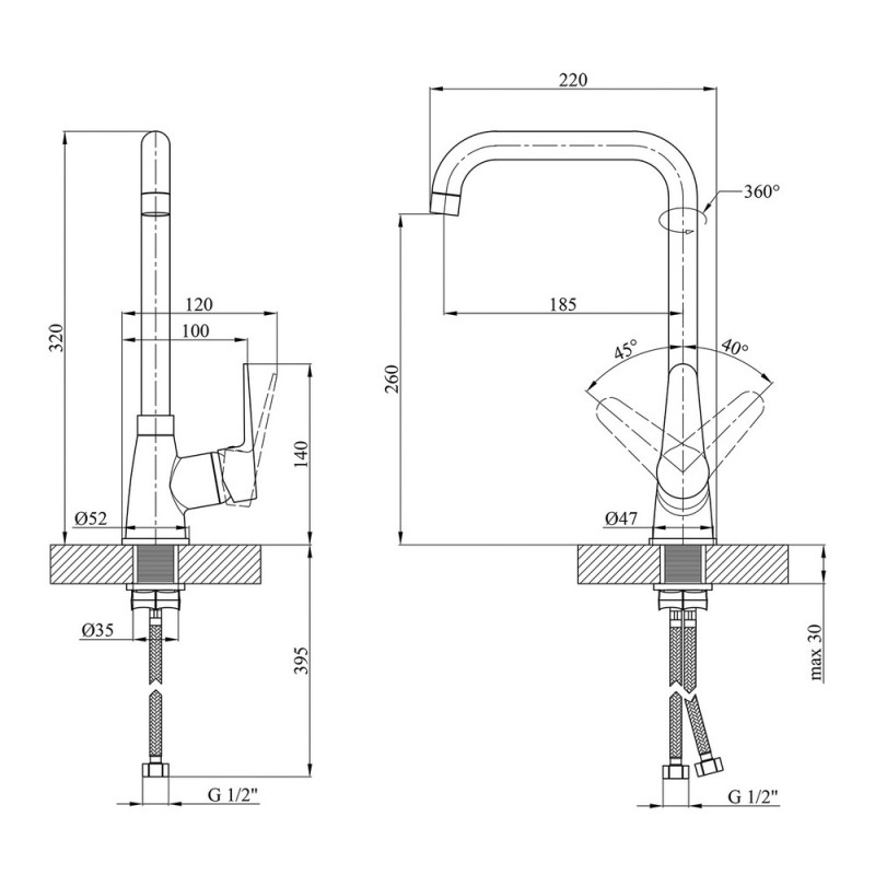 Смеситель для кухни Kroner KRM Elbe-SCH030 однорычажный черный CV023771