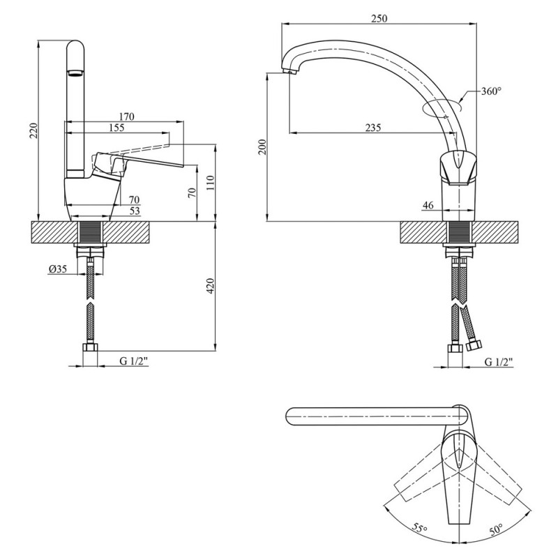 Смеситель для кухни Kroner KRM Odra-C032 однорычажный хром CV021151