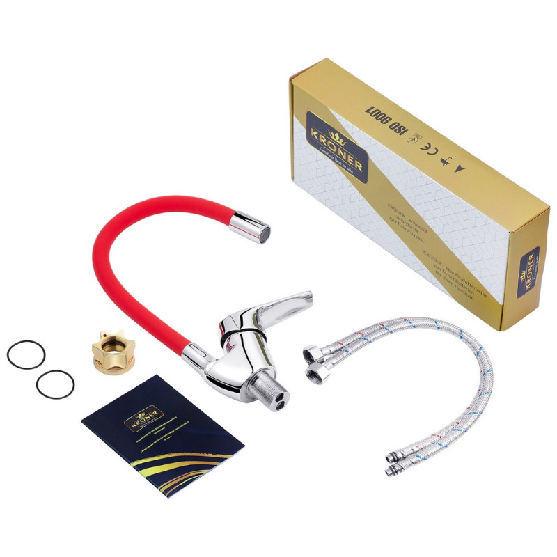 Смеситель для кухни Kroner KRM Odra-C032RED однорычажный хром/красный
