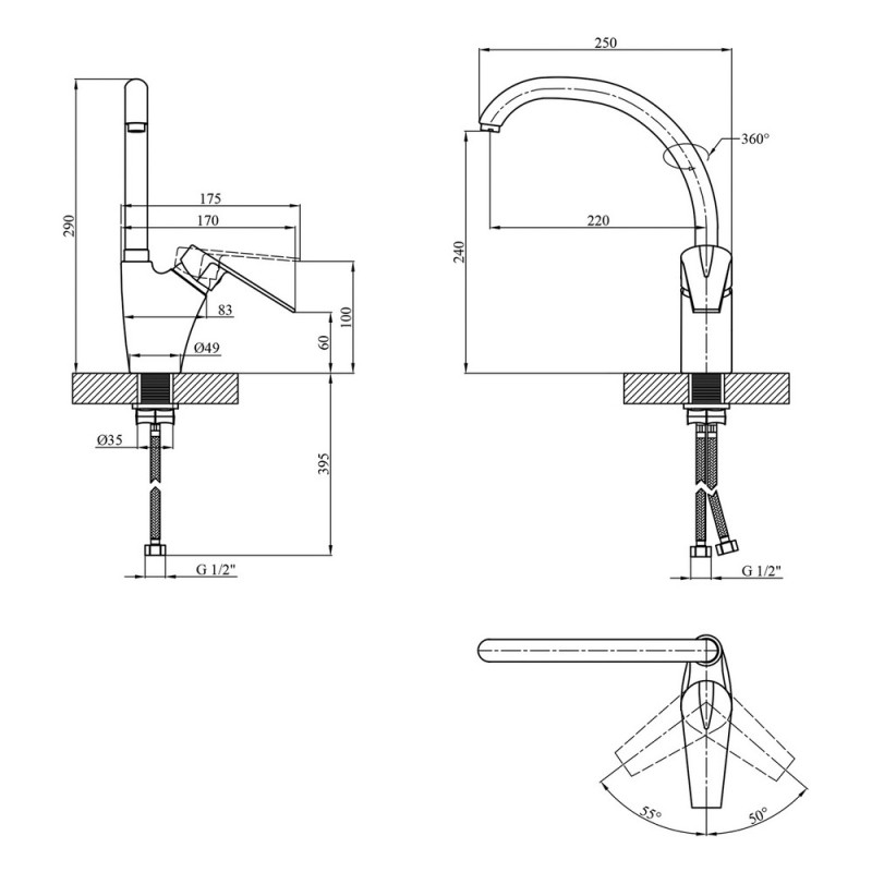 Смеситель для кухни Kroner KRM Odra-C034 однорычажный хром CV021180