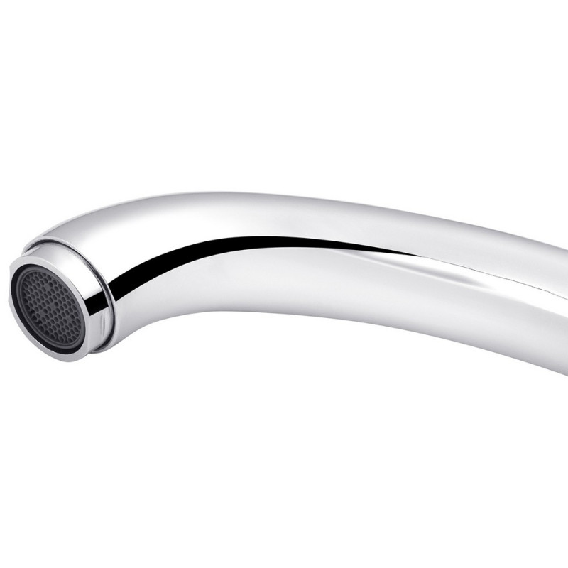 Смеситель для кухни Kroner KRM Rhein – C031 – идеальный выбор для вашей кухни. Изготовлен из высококачественного силумина, обеспечивает надежность и долговечность использования. Хромированный цвет и глянцевая поверхность придают ему стильный вид, вписываясь в любой дизайн кухни. Форма С-образного излива позволяет легко наполнять большие кастрюли и удобно мыть посуду. Механизм смешения на основе кран-буксы способствует точной регулировке температуры воды. Наслаждайтесь функциональностью и стилем смесителя Kroner.