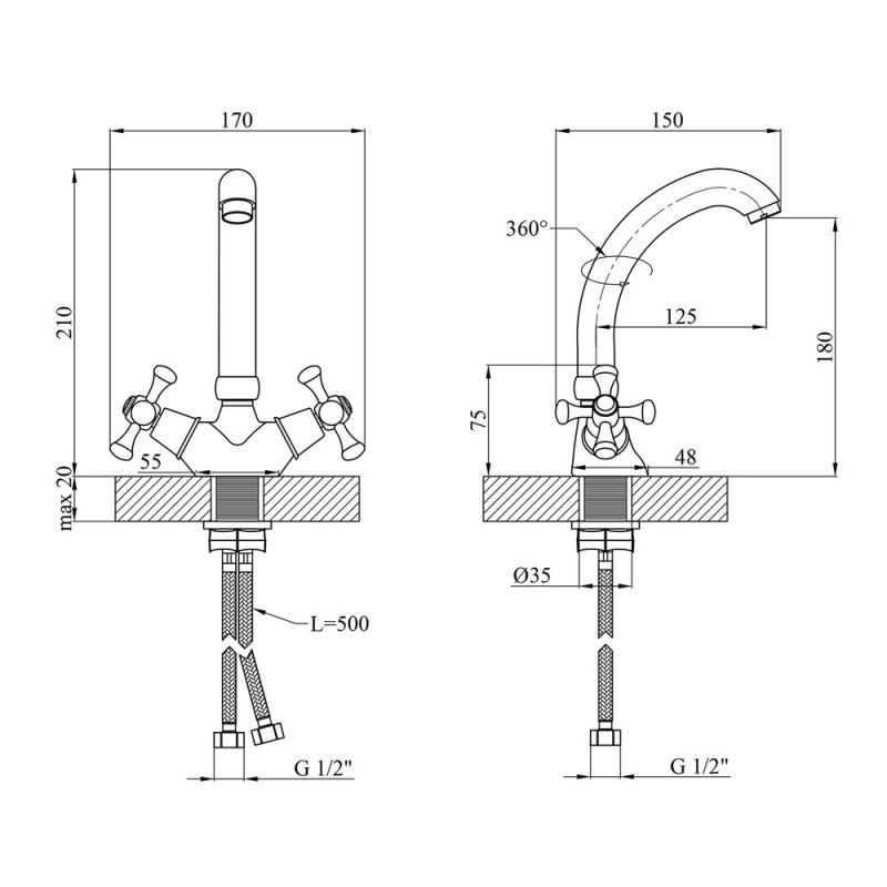 Смеситель для кухни Kroner KRM Rhein-C031 двухвентильный хром CV016434