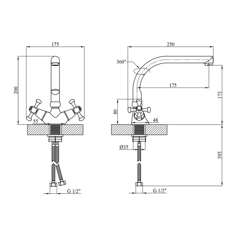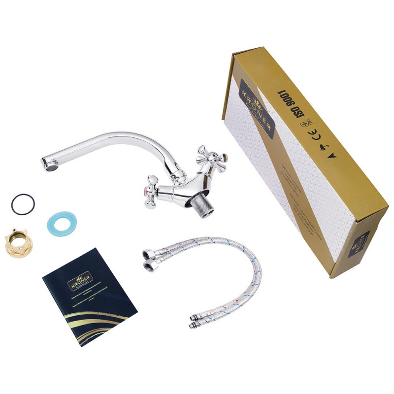 Смеситель для кухни Kroner KRM Rhein-C033 двухвентильный хром CV018075
