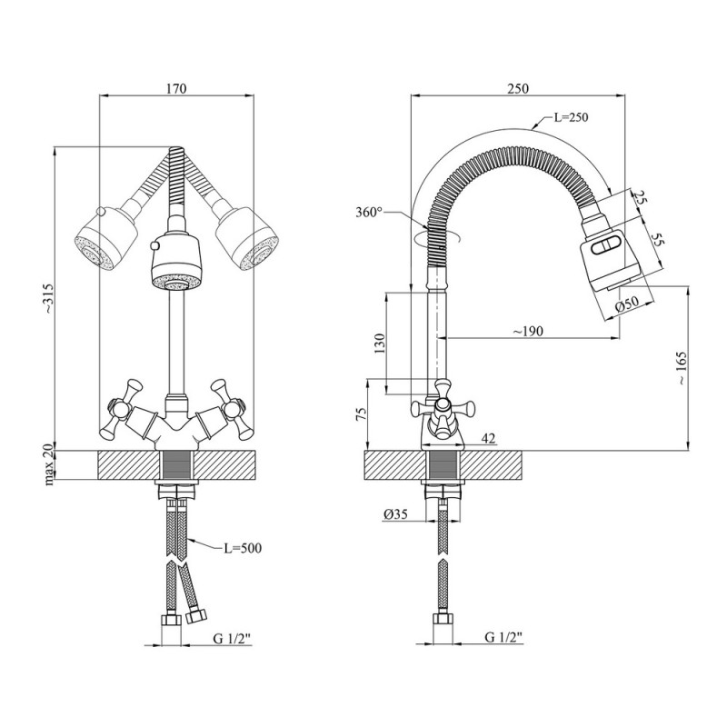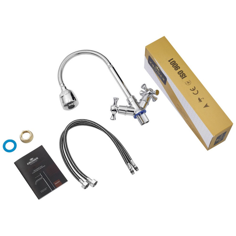 Смеситель для кухни Kroner KRM Rhein-C030-1 с гибким изливом хром CV023573