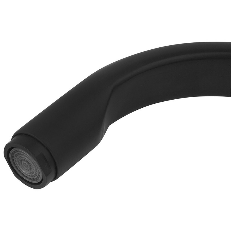 Смеситель для кухни Kroner KRM Zenda – SCH030 – идеальный выбор для вашей кухни. Изготовлен из высококачественного силумина, гарантирует прочность и долговечность. Обладает привлекательным матовым черным цветом, что придает ему элегантность. Смеситель оснащен картриджным механизмом смешивания, позволяющим удобно регулировать температуру воды. Его уникальная U-образная форма излива обеспечивает удобство при наполнении посуды или мытья продуктов. Наслаждайтесь функциональностью и стилем смесителя Kroner.