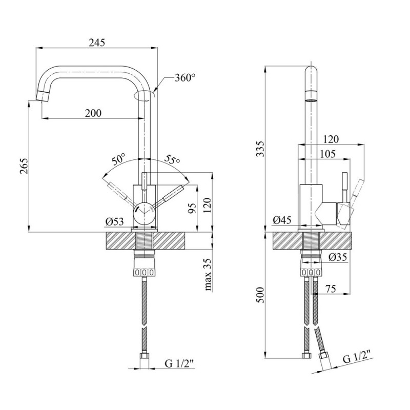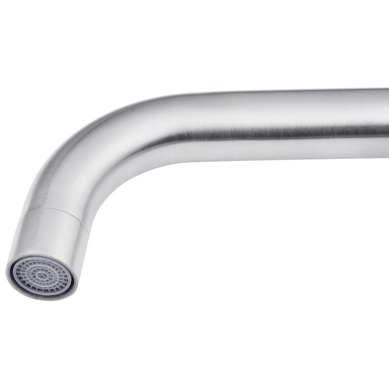Кухонные смесители от Kroner – это немецкое качество, технология и надежность. Современный дизайн станет удачным дополнением интерьера кухни. Изготовление из качественных материалов, не поддающихся коррозии, легкость в сборке не доставит хлопот при монтаже и использовании. Имеют поворотное излияние и устанавливается на одно отверстие с подводом воды с помощью гибких шлангов М10х1/2". Шланги для подключения входят в комплект. Данная модель изготовлена из нержавеющей стали AISI 304.