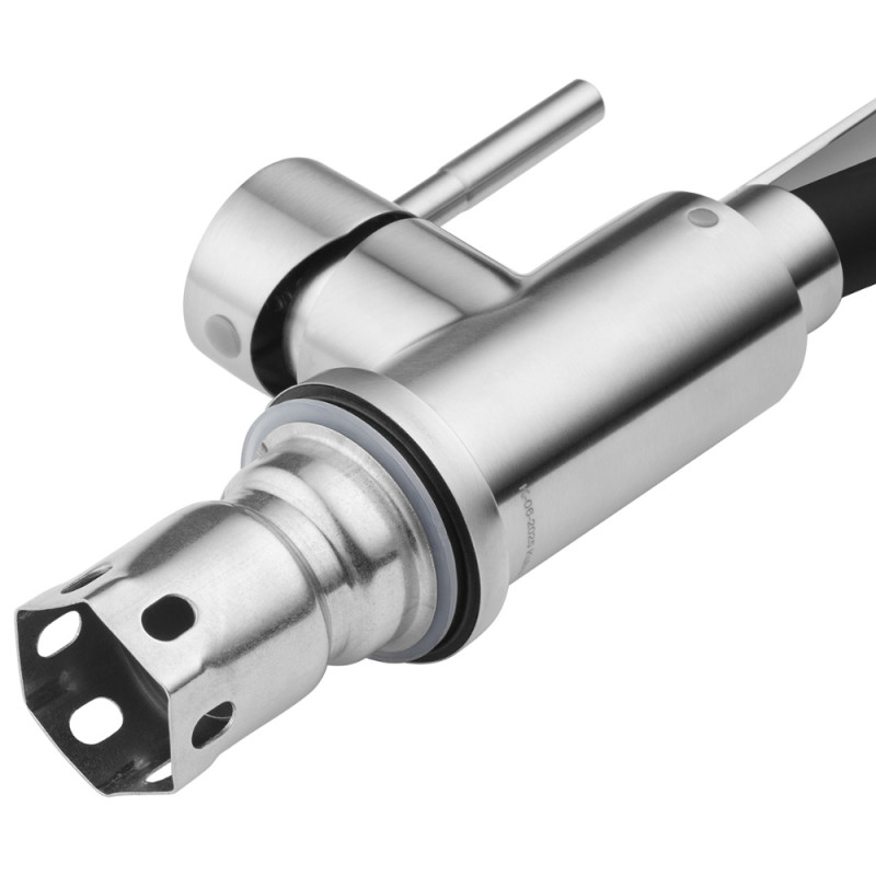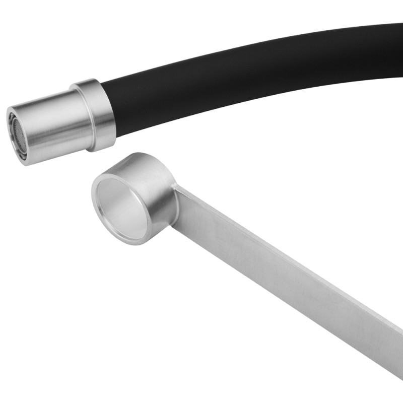 Kroner KRP Edelstahl Klassisch - ESG03593BLK – современный кухонный смеситель с элегантным черным гусям, идеально сочетающий практичность и стиль. Корпус изготовлен из высококачественной нержавеющей стали, что гарантирует долговечность и коррозионную стойкость. Гибкий излив обеспечивает максимальное удобство в использовании, позволяя легко направлять поток воды.