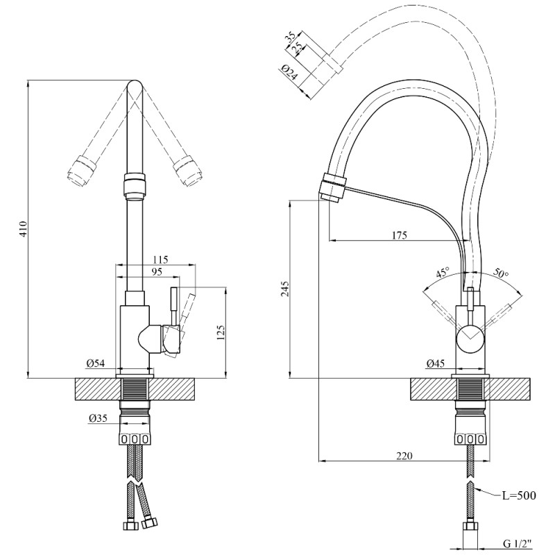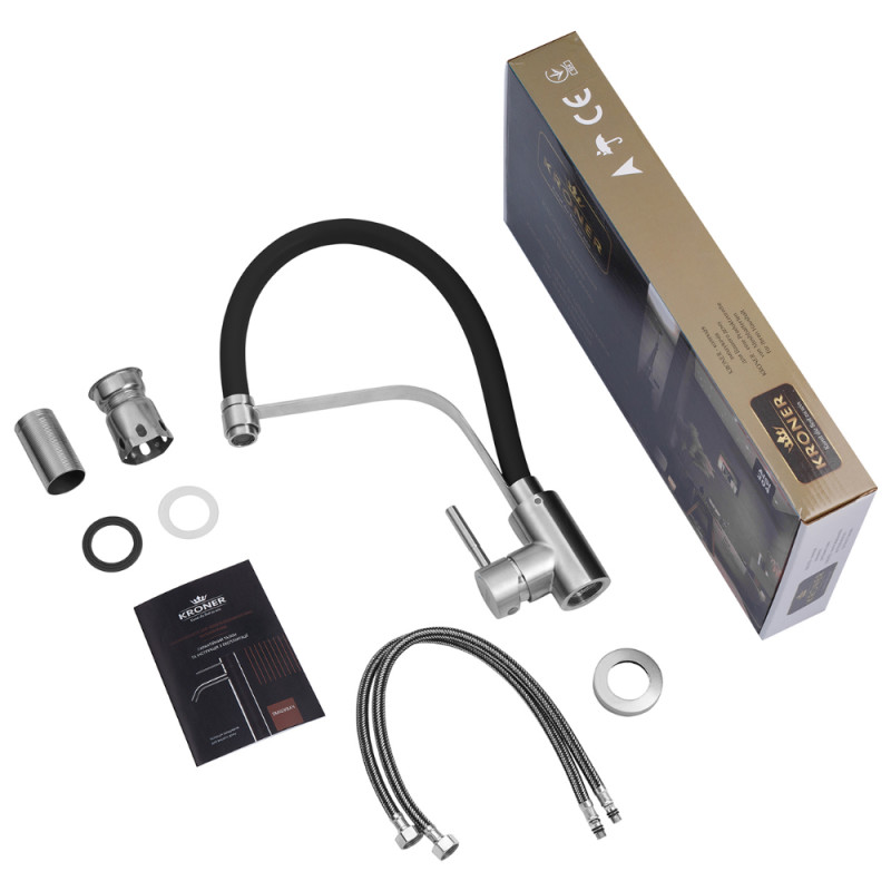 Смеситель для кухни Kroner KRP Edelstahl Klassisch-ESG03593BLK с гибким изливом нержавеющая сталь/черный