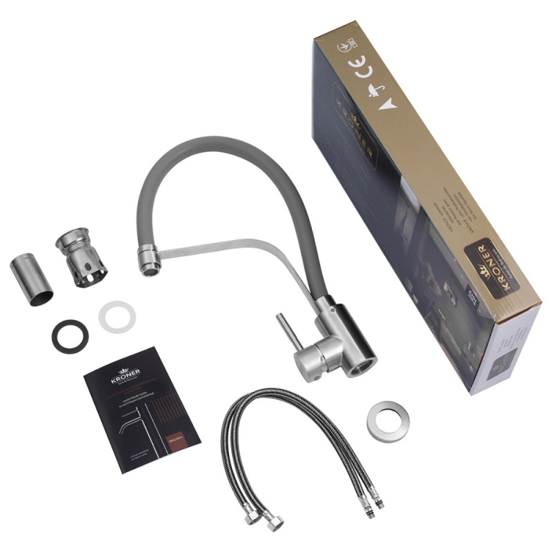 Kroner — это немецкий бренд, специализирующийся на производстве смесителей, моек и аксессуаров для ванной и кухни. Бренд ценится за немецкое качество, сочетающее современные технологии и строгий контроль производства с доступной ценой. Продукция Kroner отличается современным дизайном и практичностью, для её изготовления используются передовые технологии литья, гальванизации и шлифовки.