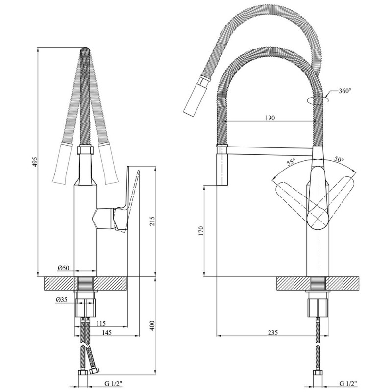 Смеситель для кухни Kroner KRP Küche - C035 – идеальный выбор для вашей кухни. Изготовлен из высококачественной латуни, гарантирует прочность и долговечность. Обладает привлекательным глянцевым хромированным цветом, что придает ему элегантность. Смеситель оснащен картриджным механизмом смешивания, позволяющим удобно регулировать температуру воды. Его уникальная U-образная форма излива обеспечивает удобство при наполнении посуды или мытья продуктов. Наслаждайтесь функциональностью и стилем смесителя Kroner.