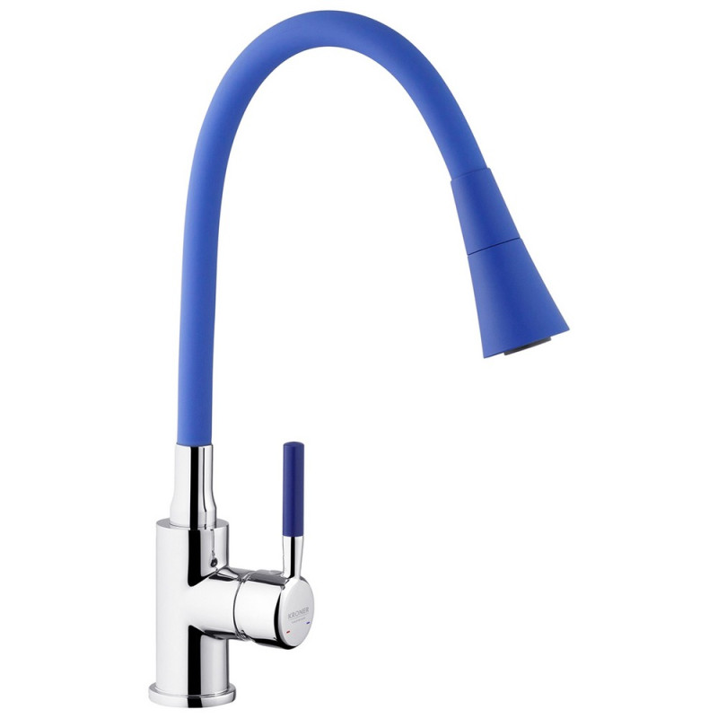 Смеситель для кухни Kroner KRP Kuche-C132BLE с гибким изливом хром/синий CV033131