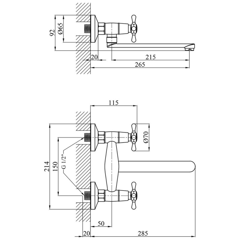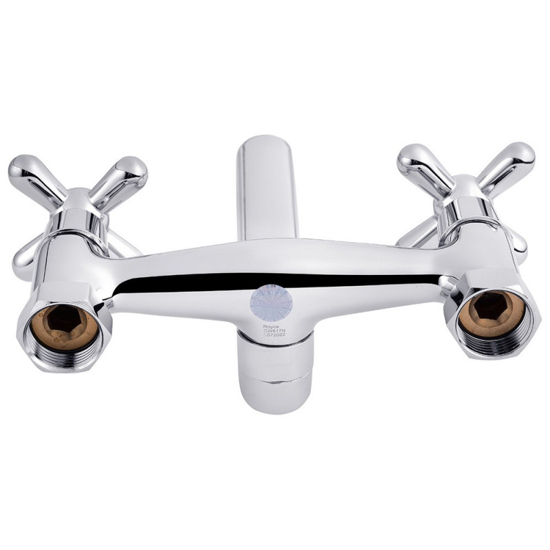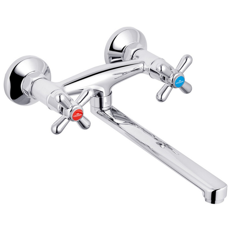 Смеситель для кухни Kroner KRP Royce - C040 настенная модель, которая отличается современным дизайном и надежностью. Латунное устройство с глянцевой хромированной поверхностью эстетично и долговечно. Выполнен в классическом стиле, с вентильными ручками для переключения потока холодной и горячей воды. Монтаж осуществляется при помощи эксцентриков, обеспечивающих максимальное прилегание к трубам и снижающих уровень шума.