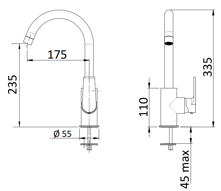 - Длина излива: 175 мм