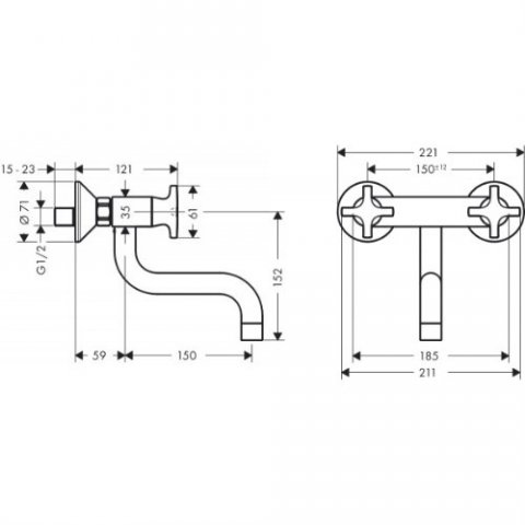 Смеситель для кухни настенный двухвентильный Hansgrohe коллекция Logis Classic хром 71287000