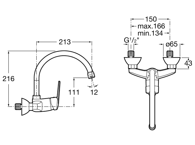 Смеситель для кухни настенный Roca Victoria-N однорычажный латунь хром A5A7625C00