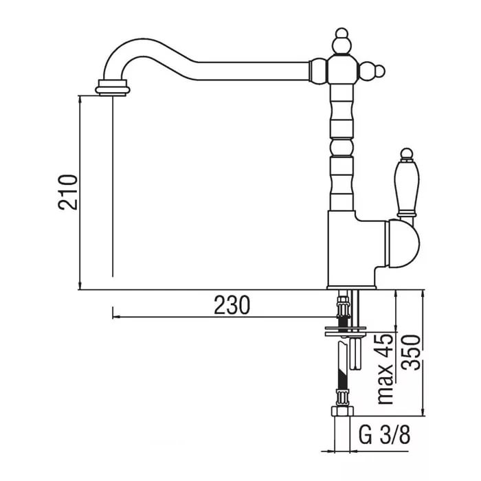 - Длина излива: 230 мм