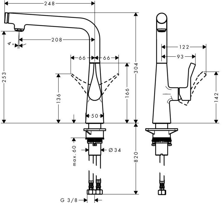 однорычажный кухонный смеситель, соединительные шланги, крепежный набор, инструкция по монтажу