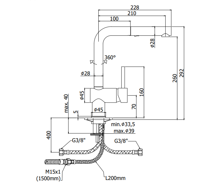 Смеситель для кухни Paffoni Light черный матовий LIG 285 NO MET