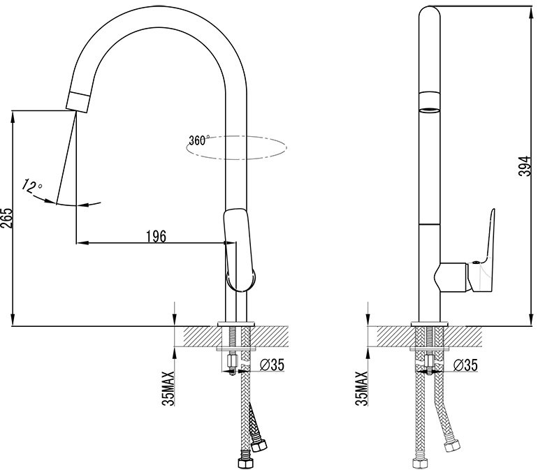 - соединительные шланги: гибкий 400 мм, диаметр G3/8