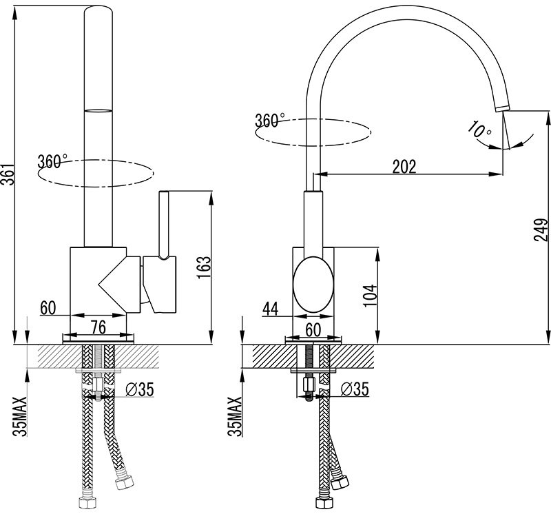- соединительные шланги: гибкие 400 мм, диаметр G3/8;