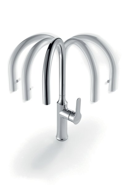 Серия кухонных смесителей выполнена в том же стиле, что и смесители для ванных комнат из одноименной концепции. Чем меньше разных стилей используется при обустраивании жилья, тем сильнее окончательный эффект. Гораздо лучше, когда все выдержано в одном стиле.