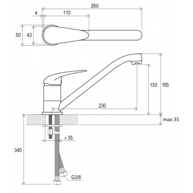 - Гибкие соединительные шланги длиной, размер G3/8 подходит для кухонной раковины или большого умывальника