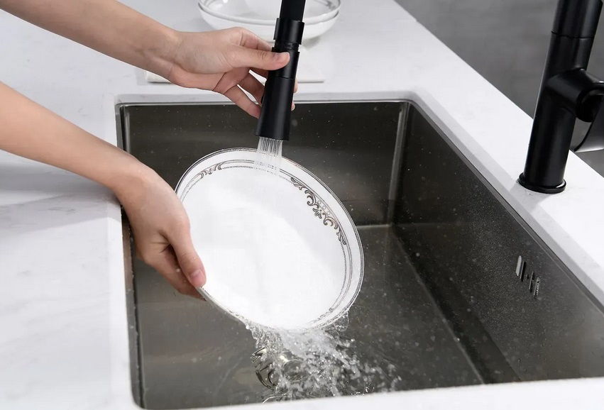 Смеситель для кухни Rea Castor однорычажный с выдвижной лейкой черный