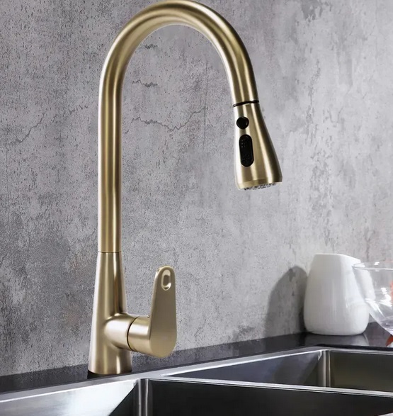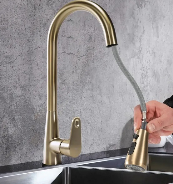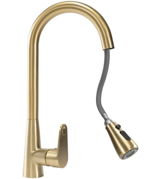 Смеситель для кухни Rea Mild однорычажный с выдвижной лейкой матовое золото REA-B4803