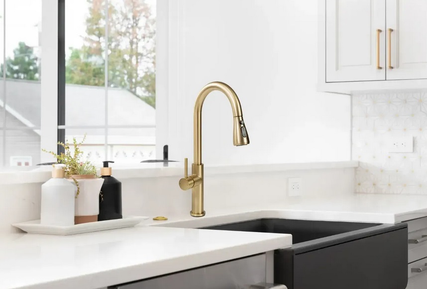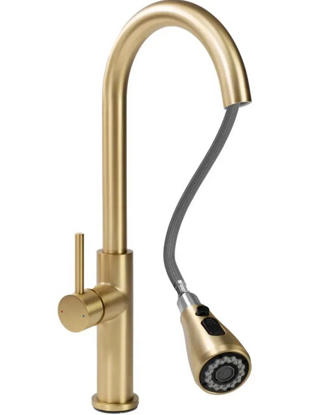 Смеситель для кухни Rea Nest однорычажный с выдвижной лейкой матовое золото REA-B6600