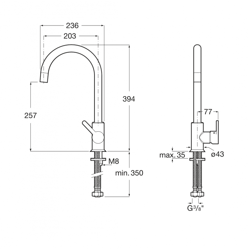 1) Смеситель для кухни Roca Carelia однорычажный латунь хром