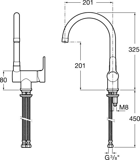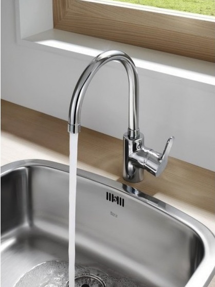 Смеситель для кухни Roca L20 хром (A5A8409C00) устанавливается на край мойки или на столешницу, если ваша кухонная мойка не предусматривает установку смесителя на нее.