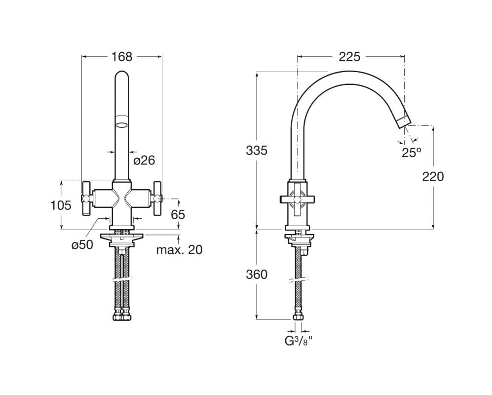 - Длина излива: 225 мм