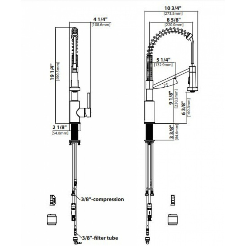 Ручка с одним рычагом управляет потоком как водопроводной, так и фильтрованной воды; просто поверните ручку до упора вперед, чтобы активировать функцию фильтрации. Оптимизированный для использования в жилых помещениях, Bolden создает привлекательный индустриальный образ благодаря высокому дугообразному изливу с открытой спиралью и обладает преимуществом компактной высоты, которая подходит там, где другие смесители коммерческого типа не помещаются. Выдвижной излив с поворотным адаптером обеспечивает превосходную маневренность и расширенный диапазон движения, позволяя вам дотянуться до всего вокруг кухонной мойки.
