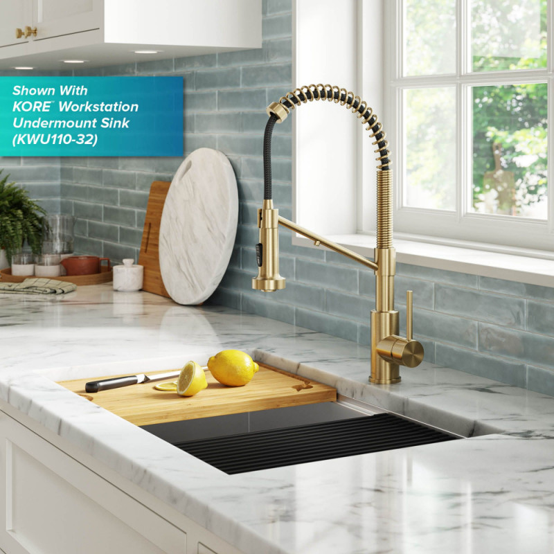 Смеситель для кухни с подключением к фильтру Kraus Bolden с выдвижной лейкой античная бронза