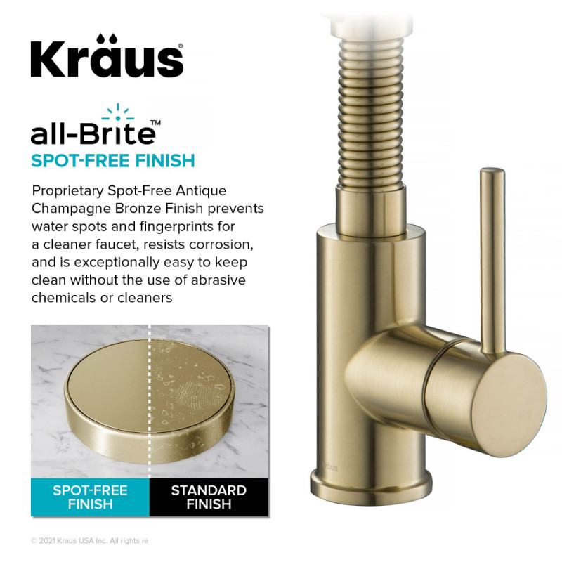 Смеситель для кухни с подключением к фильтру Kraus Bolden с выдвижной лейкой античная бронза KFF-1610SFACB