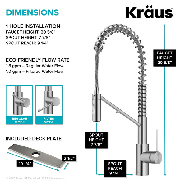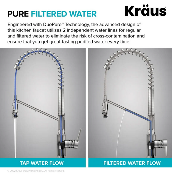 РЕКОМЕНДУЕМАЯ СИСТЕМА ФИЛЬТРАЦИИ: 2-ступенчатая система фильтрации воды под раковиной Kraus® FS-1000 с угольным блоком (продается отдельно), которая улучшает качество воды, удаляя загрязняющие вещества размером до 0,5 микрон — помогает удалить свинец, некоторые фармацевтические препараты, летучие органические соединения, запах и вкус хлора. , и другие примеси