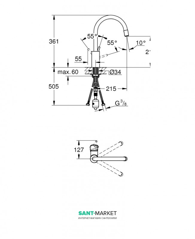 Смеситель для кухни с выдвижной лейкой Grohe Concetto New суперсталь 32663DC1