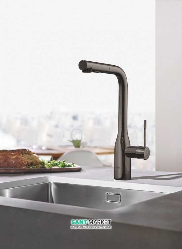 Смеситель для кухни с выдвижной лейкой Grohe Essence однорычажный графит 30270A00