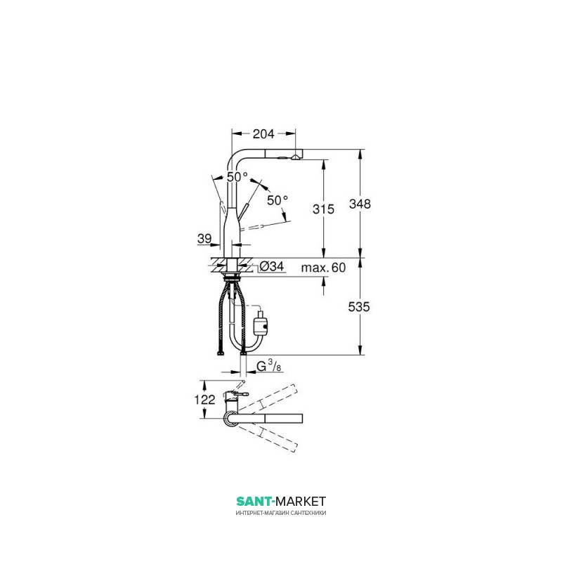 Смеситель для кухни с выдвижной лейкой Grohe Essence однорычажный солнечный восход 30270GL0