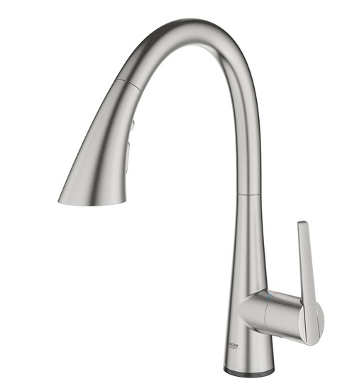 Смеситель для кухни с выдвижной лейкой сенсорный Grohe Zedra Touch однорычажный суперсталь