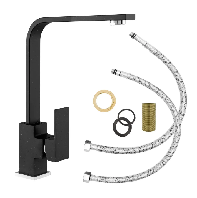 Простая установка кухонного смесителя. В комплект входят все элементы, необходимые при установке гибкого крана, благодаря которым вы сэкономите время на подключение к воде.