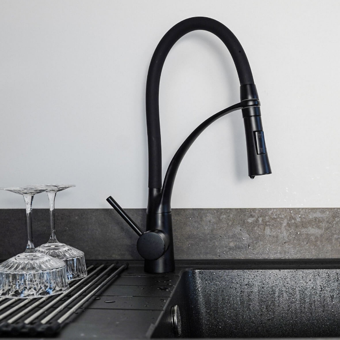 Смеситель для кухни Sink Quality Style однорычажный с гибким изливом черный