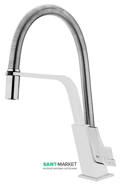 1) Смеситель для кухни Teka IC 939 White врезной с выдвижной лейкой белый/хром