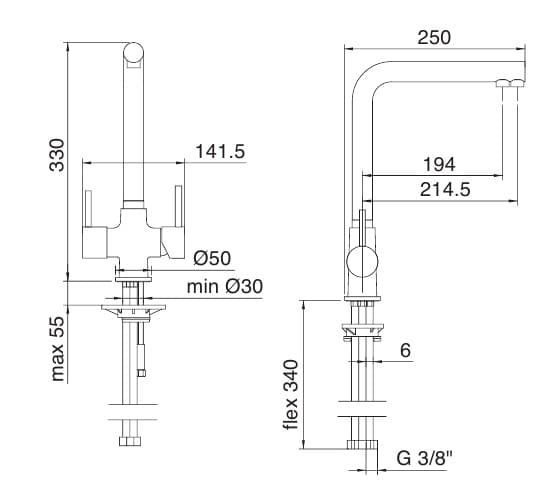 1) Смеситель для кухни Treemme Kitchen-Design под фильтр матовый белый