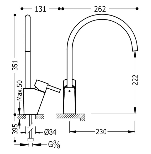 1) Смеситель для кухни Tres Alplus однорычажный хром