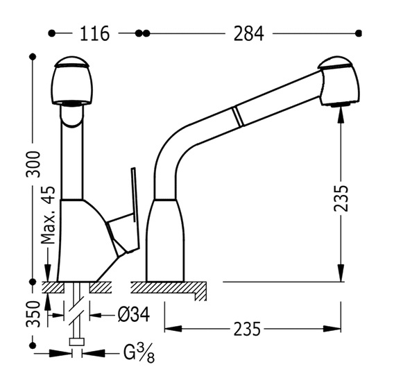 - однорычажный вертикальный смеситель для мойки со съемным душем (2 режима)